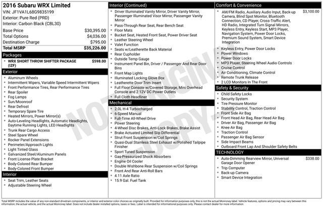 2016 Subaru WRX Limited