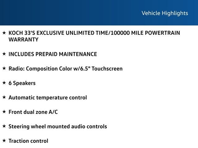 - Radio: Composition Color w/6.5" Touchscreen -inc: AM/FM radio and WMA/MP3 player w/USB-C input, 6 speaker sound system, App-Connect smartphone integration w/Apple CarPlay, Android Auto and MirrorLink via USB, capability for in-vehicle 4G LTE enabled Wi-Fi (cellular data plan required; includes limited trial), capability for VW Car-Net services (capabilities for certain services vary; requires enrollment or subscription) and Bluetooth® connectivity (for compatible devices)