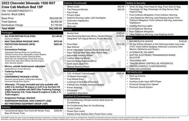 - Convenience Package includes (CJ2) dual-zone automatic climate control, (A2X) 10-way power driver seat including power lumbar, (KA1) heated driver and passenger seats, (NP5) leather-wrapped steering wheel, (KI3) heated steering wheel, (N37) manual tilt/telescoping steering column, (KI4) 120-volt power outlet, (KC9) 120-volt bed-mounted power outlet, (UBI) 2 charge-only USB ports for second row, (C49) rear-window defogger, (AVJ) Keyless Open and Start, (BTV) Remote Start and (UTJ) content theft alarm. (Upgradeable to (A50) bucket seats and includes (D07) center console. Vehicles built prior to 3-14-2022 and after 4-24-2022 include heated driver and front outboard passenger seats. Certain vehicles built on or after 3-14-2022 through 4-24-2022 will be forced to include (00V) Not Equipped with Heated or Ventilated Front Seats, which removes heated front seats. Vehicles equipped with (00V) Not Equipped with Heated or Ventilated Front Seats will be eligible for later dealer retrofit to enable functionality. Certain vehicles built prior to 3-28-2022 may be forced to include (00G) Not Equipped with Heated Steering Wheel, which removes the heated steering wheel. See dealer for details or the window label for the features on a specific vehicle.)