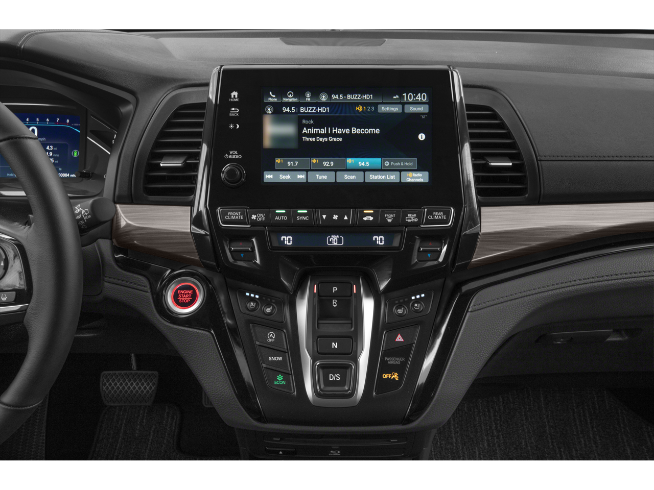- Radio: 550-Watt AM/FM/HD Premium Audio System -inc: 11 speakers including subwoofer, Bluetooth HandsFreeLink, Bluetooth streaming audio, MP3/auxiliary input jack, Radio Data System (RDS), Speed-Sensitive Volume Compensation (SVC), CabinControl remote compatibility, 8" display audio w/high-resolution electrostatic touch-screen and customizable feature settings, HondaLink, Apple CarPlay integration, Android Auto integration, SiriusXM, SMS text message function, 2.5-amp USB smartphone/audio interface, CabinTalk in-car PA system, advanced rear entertainment system w/10.2-inch high-resolution screen, Blu-Ray Player, built-in streaming apps and wireless headphones (2), HDMI interface, Honda Satellite-Linked Navigation System w/voice recognition and Honda HD digital traffic, CabinWatch rear seat monitor, HondaLink subscription services, Wi-Fi hotspot capability, illuminated steering wheel-mounted audio controls, 5 USB ports and body-colored fin-type roof-mounted antenna, All SiriusXM services require a subscription, sold separately by SiriusXM after the trial period, If you decide to continue service, the plan you choose will automatically renew at the then-current rates, Fees and taxes apply, See the SiriusXM Customer Agreement & Privacy Policy at www.siriusxm.com for full terms and how to cancel, which includes calling 1-866-635-2349, Available in the 48 contiguous U.S, and D.C, Some services and features are subject to device capabilities and location restrictions, All fees, content and features are subject to change, SiriusXM, Pandora and all related logos are trademarks of Sirius XM Radio Inc, and its respective subsidiaries, The Honda Satellite-Linked Navigation system functions in the United States (not including territories, except Puerto Rico) and Canada, Honda HD Digital Traffic service is only available in the United States, except Alaska, Please see your Honda dealer for details